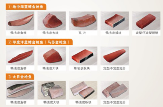 2、基本產品形態:原魚、魚柳、魚段、大板、短冊、生魚片。